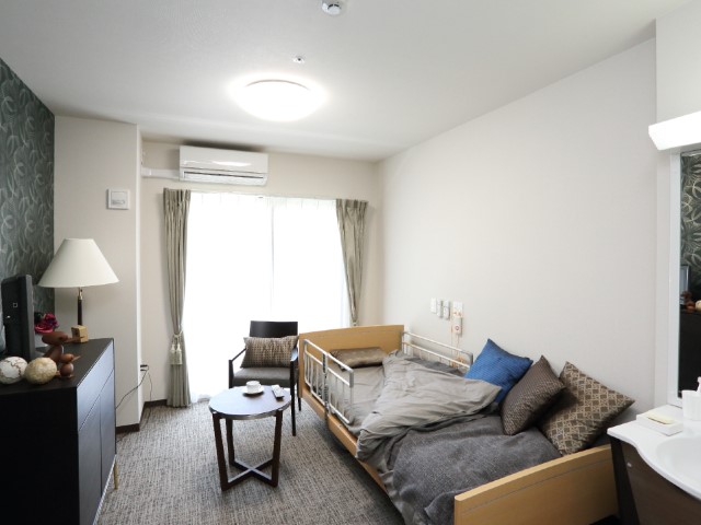 要支援1から要介護5の方までご入居可能です。長期間にわたってご利用いただけるよう、お部屋はプライバシーに配慮し、トイレや洗面所がついた個室となっております。お食事は大勢でワイワイと。病状や嚥下状態に合わせて個別に対応いたします。24時間介護スタッフ常駐!また、協力医療機関と連携しているので安心です。