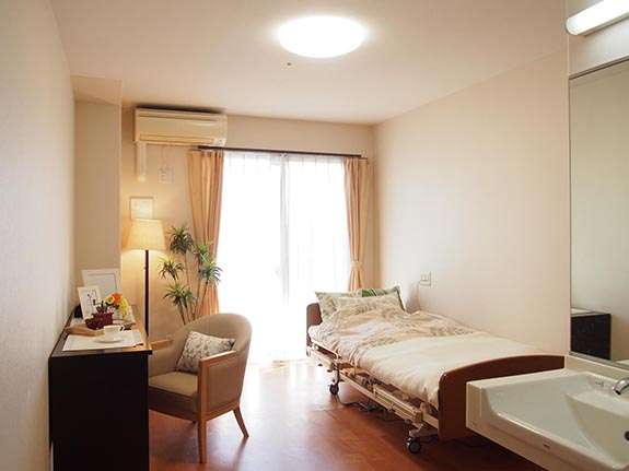 介護付き有料老人ホームなので24時間のケア体制となっております。介護保険基準値の3対1以上の介護スタッフを配置しており、緊急時には、24時間体制で対応できるよう、近隣の病院・歯科医院と提携を結んでおります。居室は全室個室とプライバシーを配慮した設計となっております。